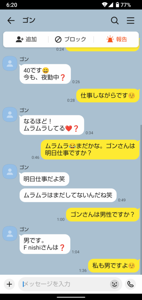 ナンネット経由で女性アカウントに間違われる日々を笑いながら送る(笑)女性の気持ちが少しわかる。こりゃパコれないよ?(笑)ちなみにプロバイダメールよりカカオ経由でのタレコミが多いですね。足が付きづらいイメージでしょうか?(笑)真偽は不明。ええ年齢の男が二枚目のフリから卒業ですよ(笑)これからは馬鹿にされる存在にならなければならないよ(笑)「ああなりたくはない人間」と陰口叩かれるようにならないといけない。今日も知らない人と素性も分からず、やりとりする。同業者のパートナーかもしれない。でもそんなこと気にしない。