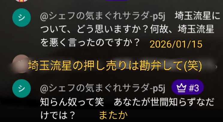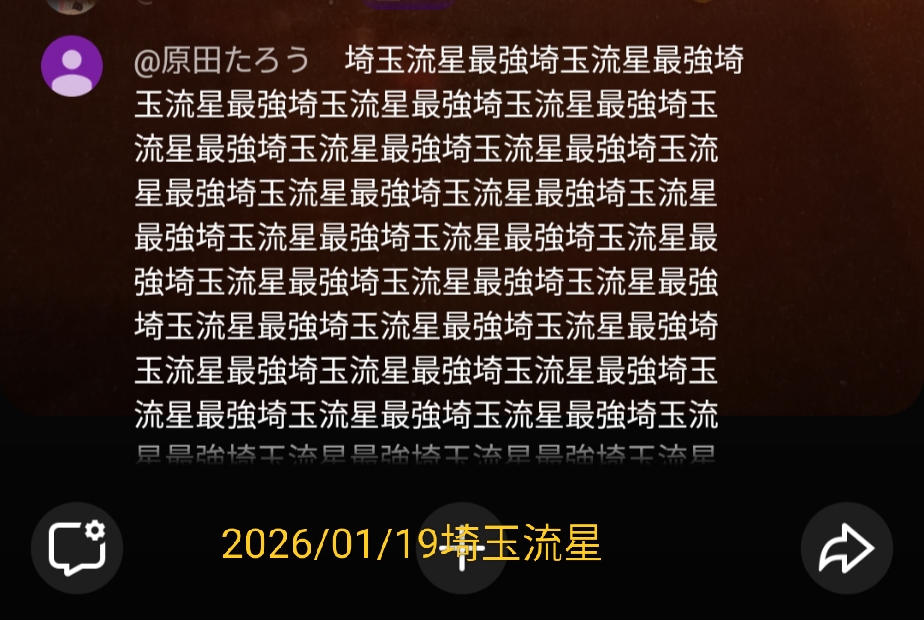 | 2026/01/16 | 埼玉流星しか勝たん | @横浜1のGフリーク好き | ||