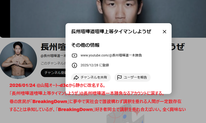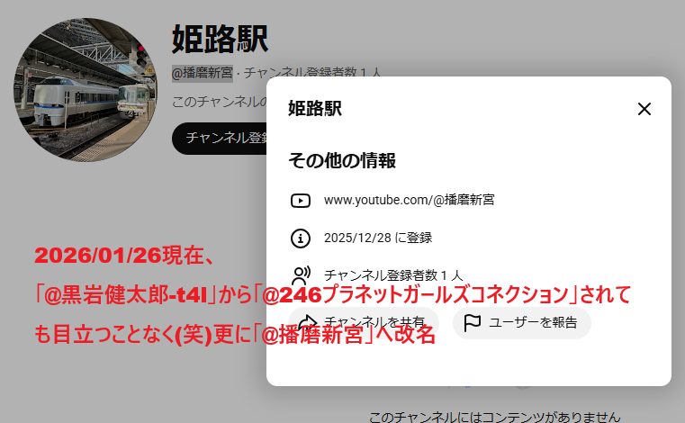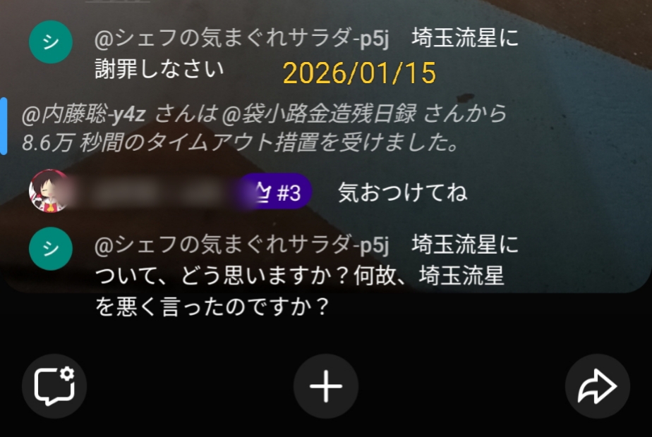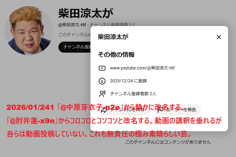 | 2026/01/19 | 69万子チャンネル | @69万子チャンネル | @原田たろう | |