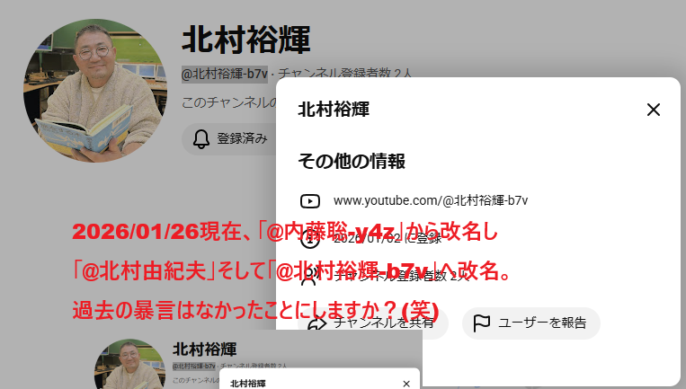 | 2026/01/15 | 北村裕輝 | @北村裕輝-b7v | @北村由紀夫 | @内藤聡-y4z |
