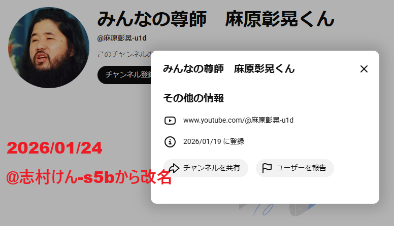 | 2026/01/21 | みんなの尊師 麻原彰晃くん | @麻原彰晃-u1d | @志村けん-s5b | |